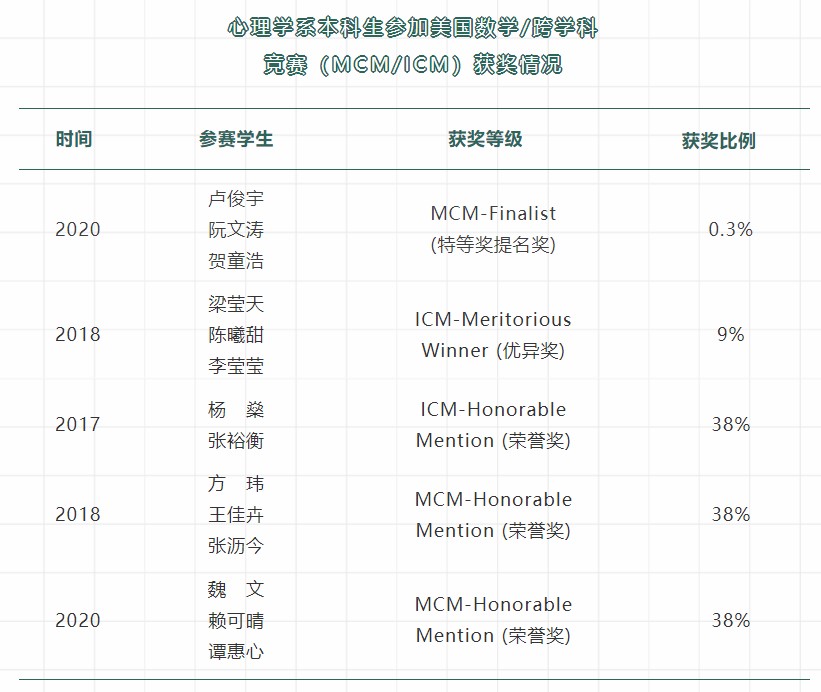 近年来,yl1111永利集团本科生参加美国数学/跨学科竞赛(MCM/ICM)屡获佳绩。其中,卢俊宇、阮文涛和贺童浩同学获得 MCM-Finalist(特等奖提名奖),该奖项获奖比例为0.3%。有一组同学获得ICM-Meritorious Winner(优异奖),获奖比例为9%。三组同学获得ICM/MCM-Honorable Mention(荣誉奖),获奖比例为38%。另有4组共10位yl1111永利集团同学获Successful Participant (成功参与奖) 。