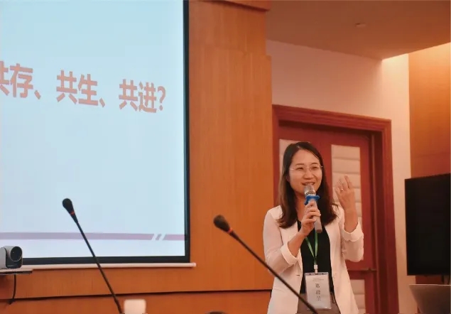 中山大学商学院的郑晓莹副教授分享的研究主题是人与AI的关系模型及其影响。郑教授提出人与AI有共存、共生、共进三层关系。共存关系中AI为人类提供服务但仅有工具属性,例如企业招聘时使用AI筛选简历;共生关系中AI从后台走到前台,成为与人并行的另一主体,例如餐厅中的机器人服务员;共进关系则是尚未出现但未来可能存在的一种关系,其中AI和人类共同占据一些社会角色并达到均衡状态。郑教授及其团队通过一系列研究探讨人与AI的不同关系如何影响人的认知与行为,以第一个研究为例,他们使用问卷测量的方法,对比人们对使用AI算法或是人类管理员工的企业的态度,结果发现,人们认为使用AI管理的企业的道德性(morality)和能力(competence)更低,并且作为员工有更强的被物化的感觉。然而,如果AI在企业管理中仅起到一个信息收集的作用,最终的决策者为人类,则感知企业道德性与能力反而更高。这说明人们对AI的态度是情境性的,在何种情境中AI能获得更为积极的评价,以及人与AI的关系通过什么心理机制影响人们的态度,这些问题引起了激烈讨论。