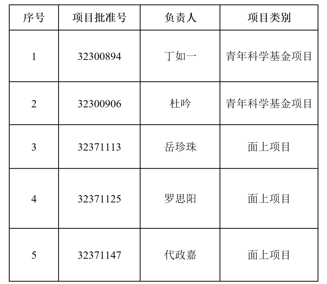 近日,国家自然科学基金委员会正式公布了2023年国家自然科学基金集中接收申请项目评审结果,我系共有5项申报项目获得资助立项,其中:青年项目2项、面上项目3项。