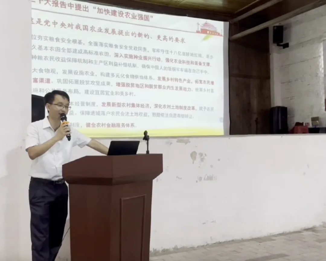 在丰阳礼堂,同学们观看了丰阳镇宣传片,简单了解了丰阳镇的发展沿革和产业情况。大富头驻村第一书记、中山大学丰阳镇驻镇帮镇扶村工作队黄旭俊队长向同学们全面介绍了驻镇帮镇扶村工作队工作开展情况以及丰阳镇乡村振兴规划工作内容。