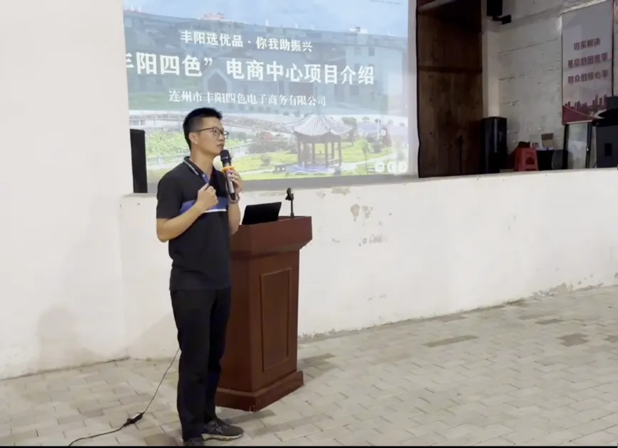 中山大学校友、丰阳优品总经理张帮岐向大家介绍了丰阳四色电商中心的经营情况和在乡村振兴工作中对丰阳产品的销售做出的贡献。