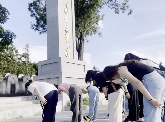 同学们在连蓝江边烈士纪念碑旁,聆听了革命先烈解放连阳地区的红色故事,重温那段光辉岁月。学习结束后,同学们还举行了缅怀仪式,向烈士纪念碑深深鞠躬致敬。