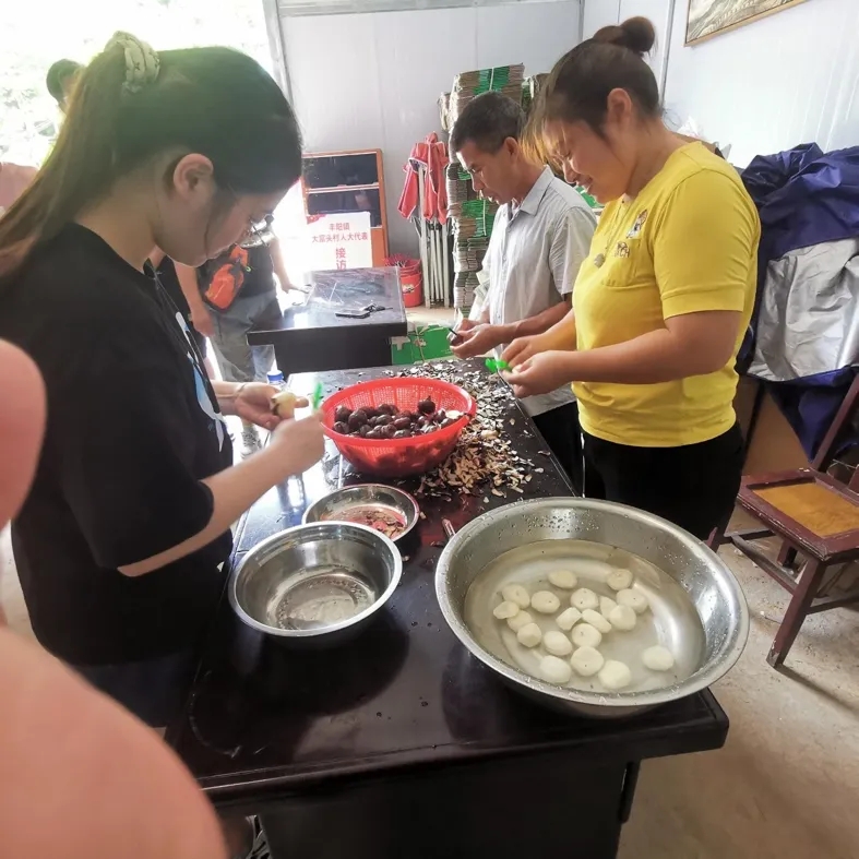 大富头村的优势种植产业是砂糖橘、马蹄和富硒水稻。正当马蹄丰收的时节,同学们重点调研了马蹄产业,在参观马蹄种植地后品尝水果马蹄,深刻记住了“吃大富头马蹄,奔向富裕马不停蹄”的宣传口号。