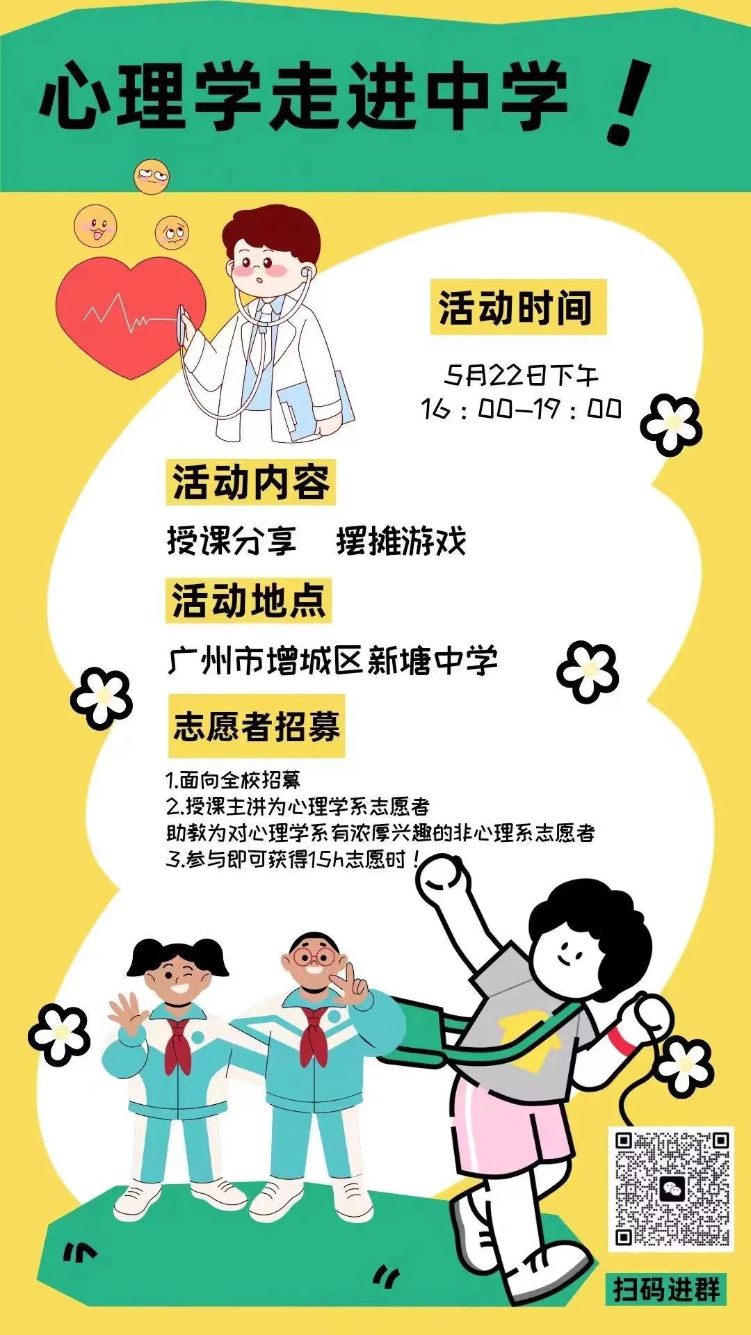 现在“心理学走进中学“活动正式向全体中山大学学生发出邀请函,诚邀各位共同作为志愿者参与到我们的活动之中!