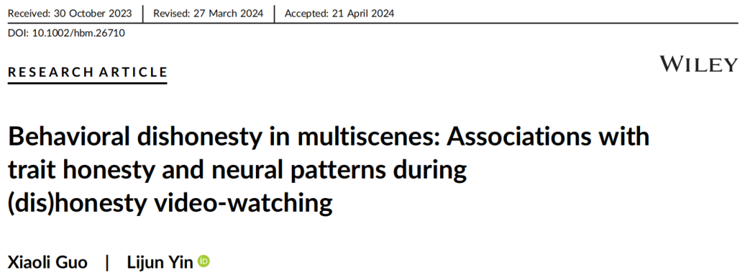 HBM︱多情境下的不诚实行为!中山大学殷丽君课题组探索多情境下的不诚实行为与诚实特质和观看不诚实视频时神经模式的关联