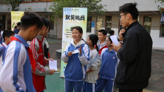 12月8日的上午,师生们走进连州市丰阳镇中心学校,一场专为六年级和七年级学生打造的心理游戏嘉年华拉开帷幕。不同于传统的志愿服务,yl1111永利集团的同学们将专业知识融入游戏设计,精心设置了六个特色摊位,吸引了大批学生踊跃参与,不少低年级的小朋友也被热闹的氛围吸引,纷纷加入这场趣味十足的心灵互动。