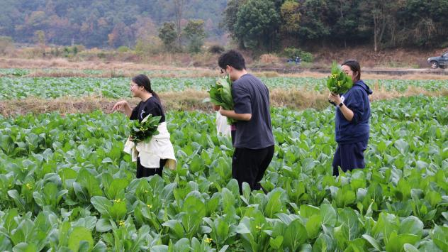 12月7日的下午,师生们首先来到连州市中山大学劳动教育实践基地,开启田间劳动实践。基地负责人详细介绍了基地的建设初衷与发展历程,随后手把手指导大家如何种植、辨别和采摘菜心。